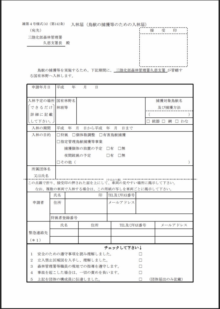 下記のリンクから、東北森林管理局の入林届に関するページに遷移しますので、しっかりと確認して入林届を作成、提出するようにしてください