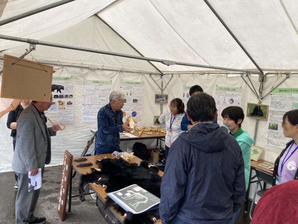 近年、岩手県内や八幡平市内ではツキノワグマの出没や農被害、人身事故が増えており、市民の関心は非常に高まっています。そういった状況を踏まえ、当日は150人を超える方にブースにお越しいただきました。