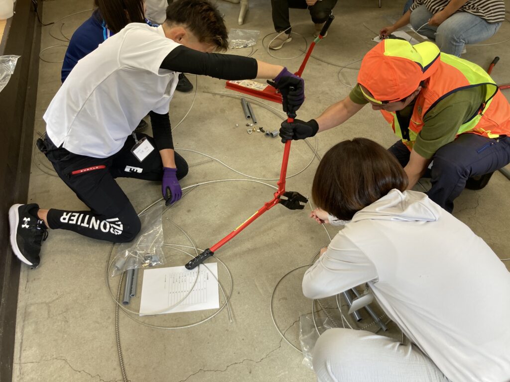 わな作成の様子、材料や工具は主催者側で準備してくれました